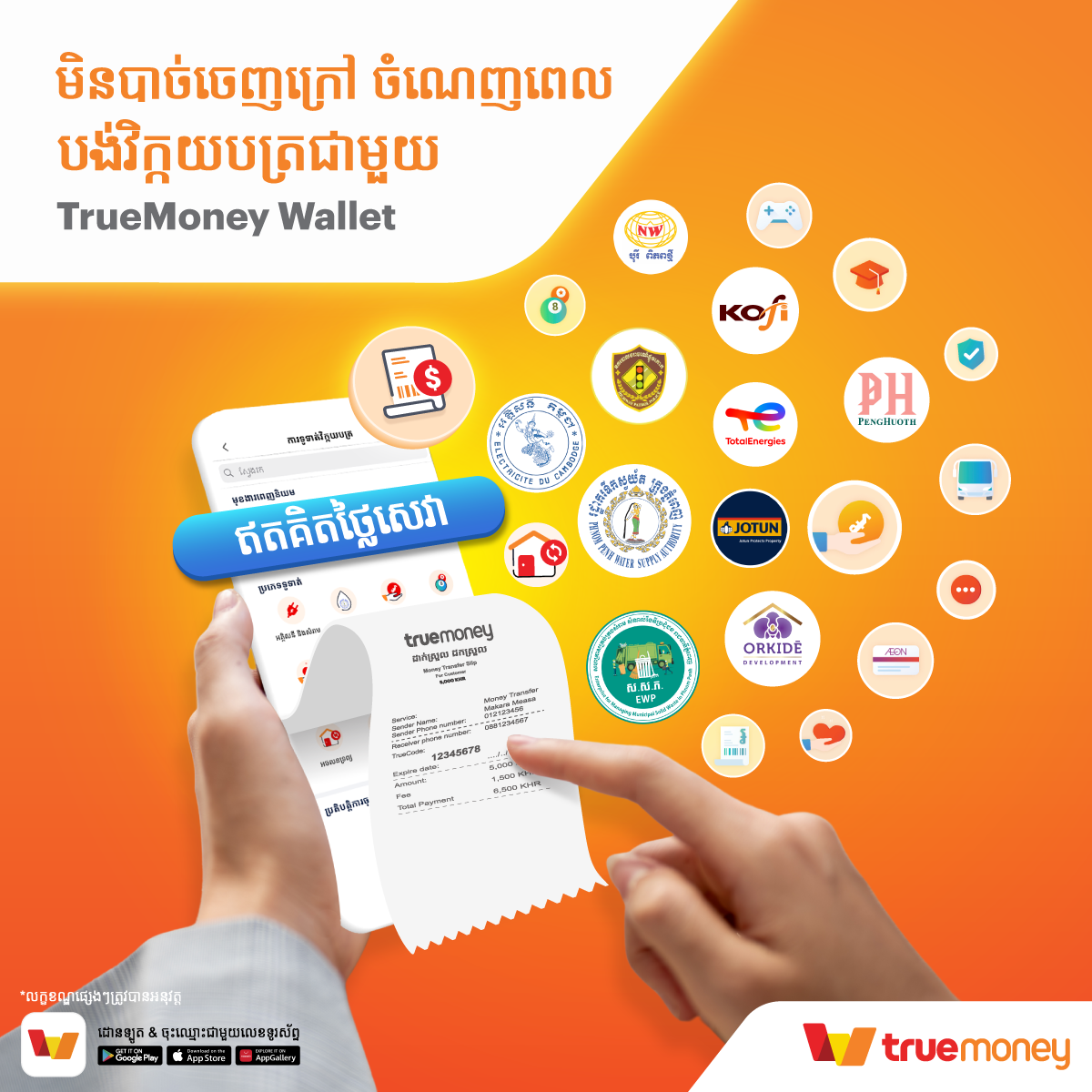 - This promotion is eligible for all Bill Payments via TrueMoney Wallet starting from $1 or 5,000 riels.